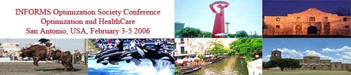 The 2006 INFORMS Optimization Society Conference (OPT 2006) will focus on Optimization and HealthCare. Computational and optimization technologies play an increasingly important role in modern medicine, life sciences and healthcare issues. Many healthcare problems can be formulated into mathematical models and can be analyzed using sophisticated optimization and computational techniques. We seek original, high quality contributions that investigate theoretical or methodological work on models and algorithms involving optimization approaches applied to healthcare, medical and biological applications. Such applications include, but are not limited to, problems in biological imaging, medical diagnosis, treatment planning, epidemiology, molecular biology, disease modeling, and health-care delivery, operations management, and scheduling.