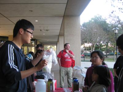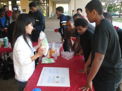 During the Mars Rover Celebration at the University of Houston, elementary and middle school students participate in the design and construction of a model of a Mars Rover to carry out a specific scientific mission on the suface of Mars. The students also have the opportunity to participate in science demonstrations and hands-on experiments with various volunteers from the University of Houston. Our laboratory, along with the Stein and Conrad Groups, conducted hands-on polymers experiments with the elemenary and middle school students.