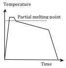 A top-seeded melt-texturing technique, previously developed for oxide superconductors, is the process we are exploring to introduce long-range grain alignment [5, 6]. This technique is schematically shown in Figure 1, where a sintered thermoelectric oxide is subjected to partial melting with a short excursion in temperature above its melting point. A single crystalline or a melt-textured seed of a material with a melting point above this temperature, and with a same crystallographic structure, and lattice parameters close to that of the thermoelectric oxide is used. Nucleation is initiated from the top of the partially-melted thermoelectric sample as it is cooled down to the vicinity of its solidification temperature. By slow cooling through the solidification temperature or holding at an undercooled temperature, growth of crystallites with grains aligned along the basal plane proceeds laterally and vertically with an epitaxial relationship from the seed. Essentially, the crystallographic orientation of the seed material is reproduced from a size of a few millimeters to about 10 cm in the bulk oxide. Since the basal planes of the melt-textured material could be aligned over the entire bulk, a high electrical conductivity is expected, which is important for high ZT.