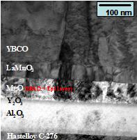 Cross section of a multilayer architecture fabricated primarily by epitaxial growth of MgO, LaMnO3 and YBCO (left) and MgO, LaMnO3, CeO2, Ge, and GaAs (right) MgO, LaMnO3, CeO2, and Ge were epitaxially grown by magnetron sputtering